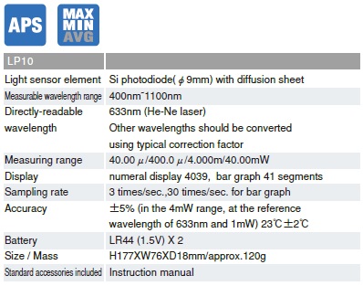 Được hiệu chuẩn ở bước sóng 633 nm nhưng cũng có thể đọc bất kỳ bước sóng nào khác trong phạm vi 400 ~ 1100 nm bằng cách sử dụng biểu đồ bên trong vỏ hộp.